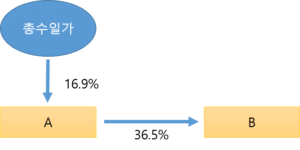 ③ 세 번째로, 지배주주로서 총수 일가가 인적 분할 과정에서 취득한 B회사 분할 신주 16.9%를 A회사에 현물출자한다. 이로써 A의 B에 대한 지분율은 기존 19.6%에서 36.5% (=19.6% + 16.9%)까지 늘게 된다.